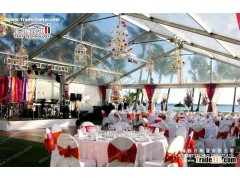The transparent tent is the most popluar tent for wedding tent with transparent roof, party and event tent, the transparent tent is not only with transparent roof, but also with clear sidewall all around, it will looks luxury and elegent. The 15m width transparent tent can be widely used as the wedding, party, exhibition tent, trade show tent, trade fair tent, conference tent, festivals celebration tent, restaurants tent, concert tent, corporate events tent, or other events, etc. The transparent is normal tent and it is the newst design and it is most popular from home and abroad